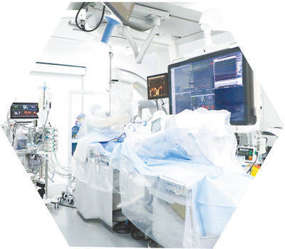 厦心医院导管室内,机器人进行二尖瓣修复手术。